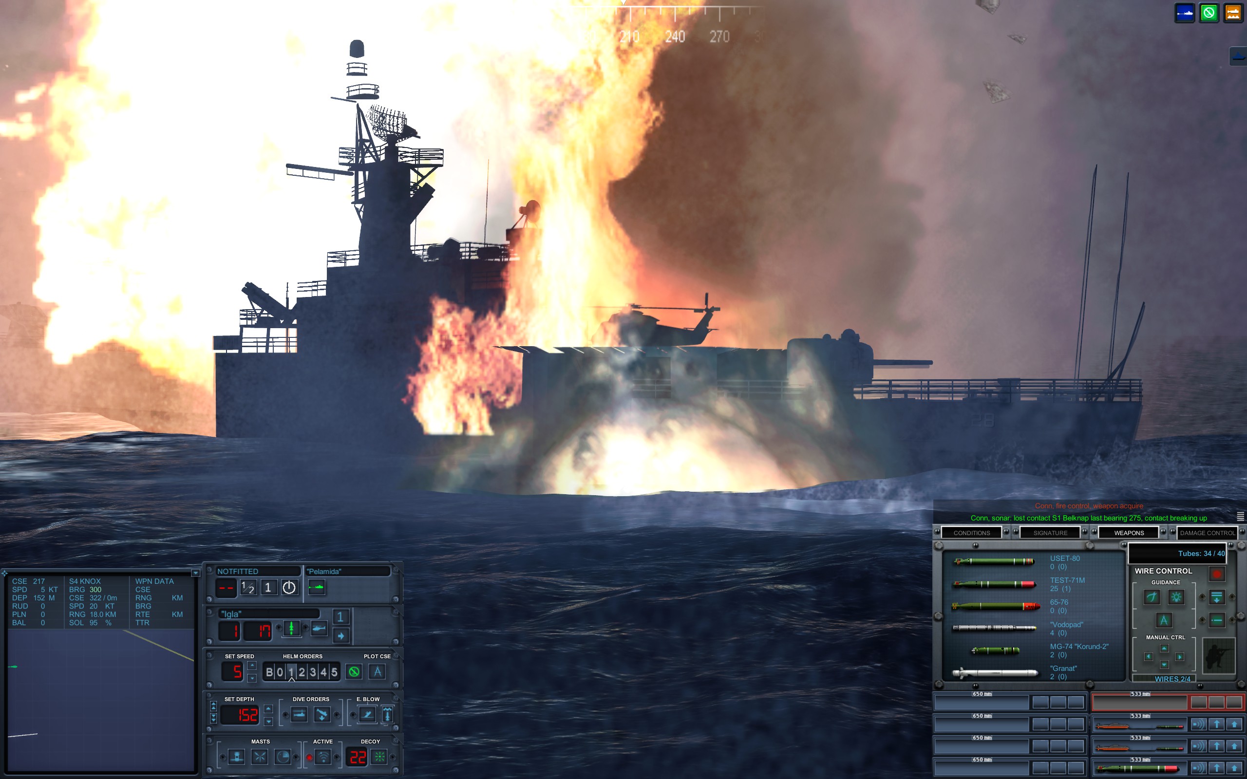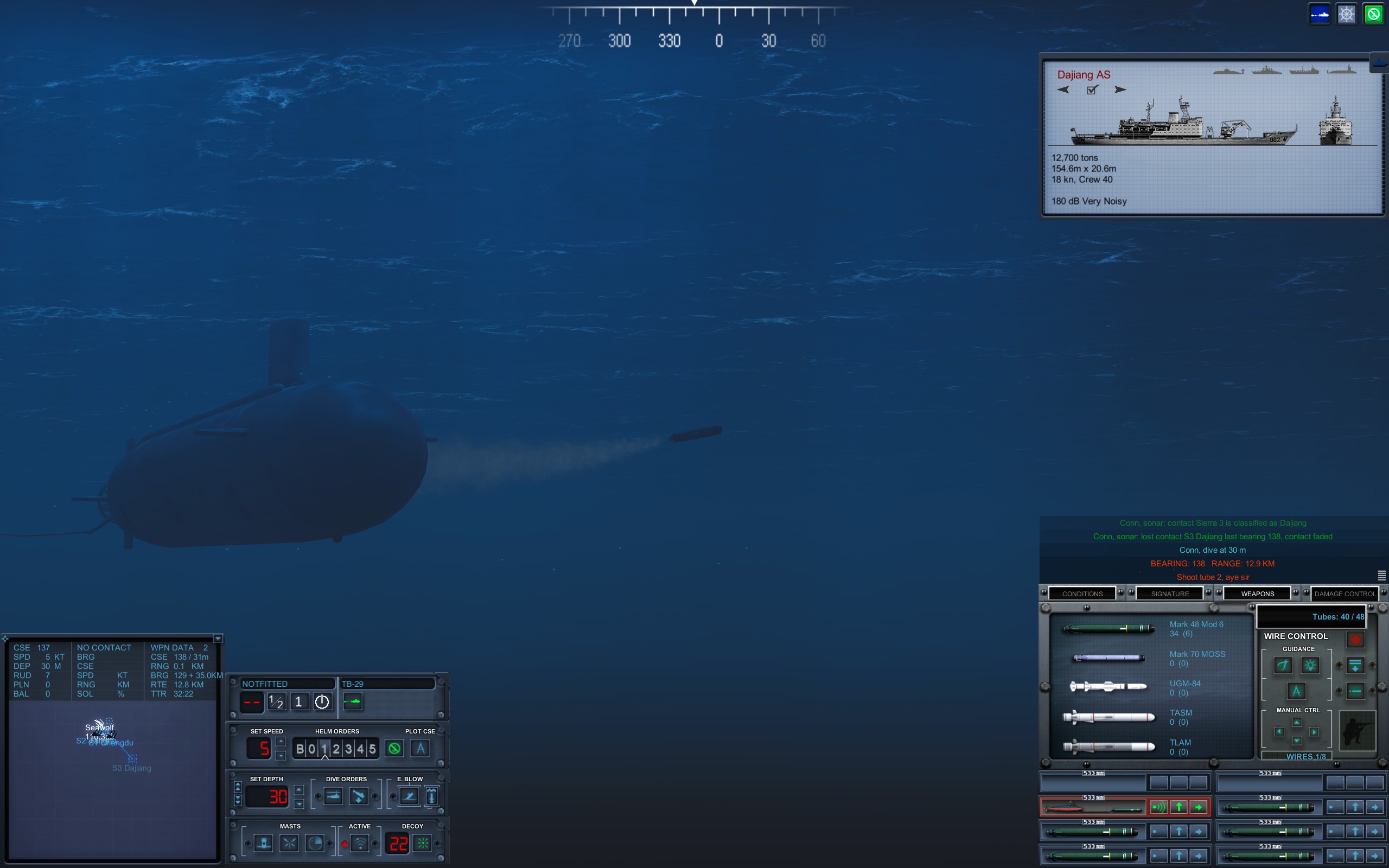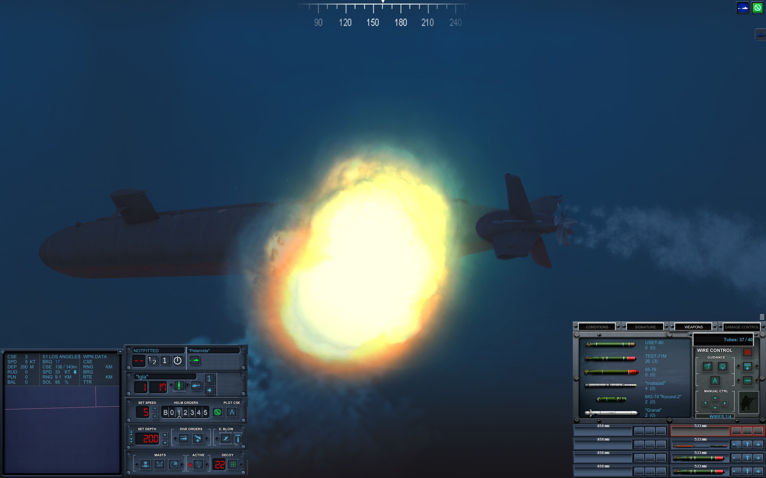 물론 멍청한 AI와 어느정도 거리가 가까웠던 덕분에 어뢰 사거리 안에 들어와서 가능했던 거지, 원잠이라 속도도 빠르고 Mk-48 어뢰도 있는 녀석이라 원래는 쉽지 않은 상대다.