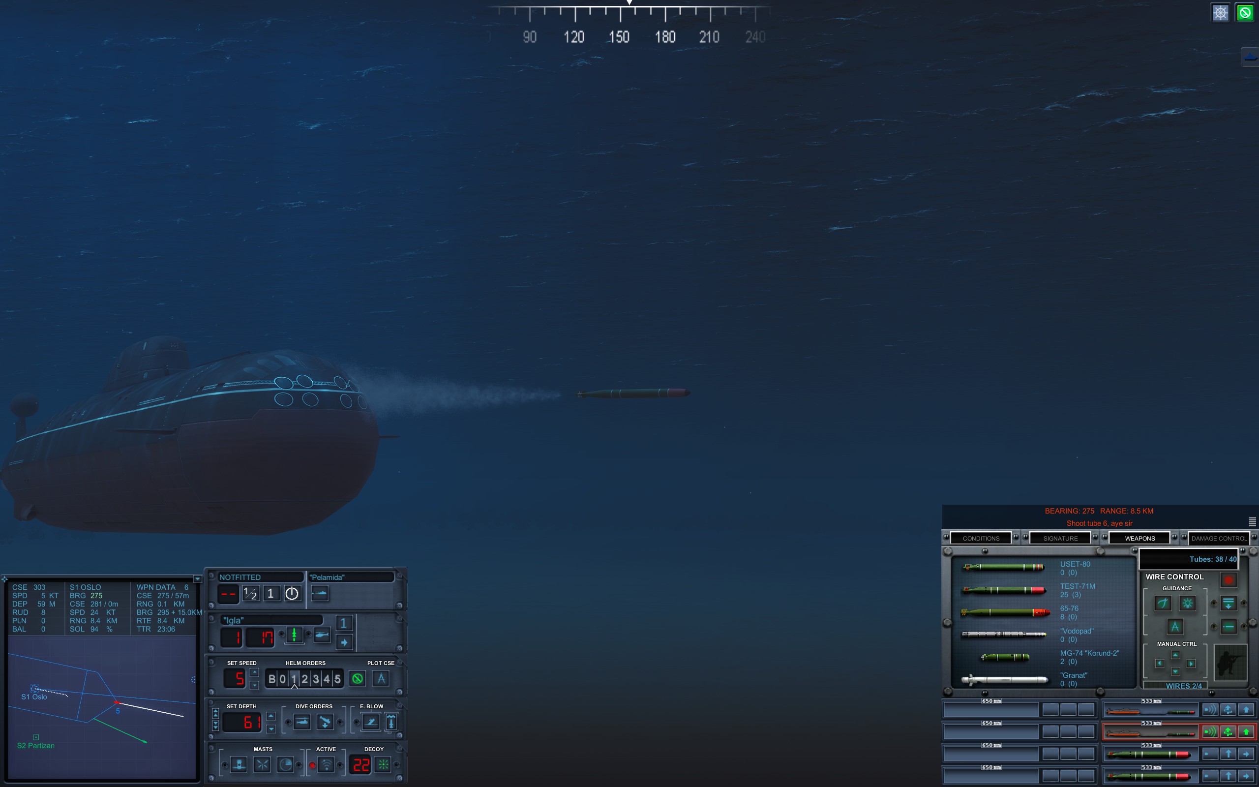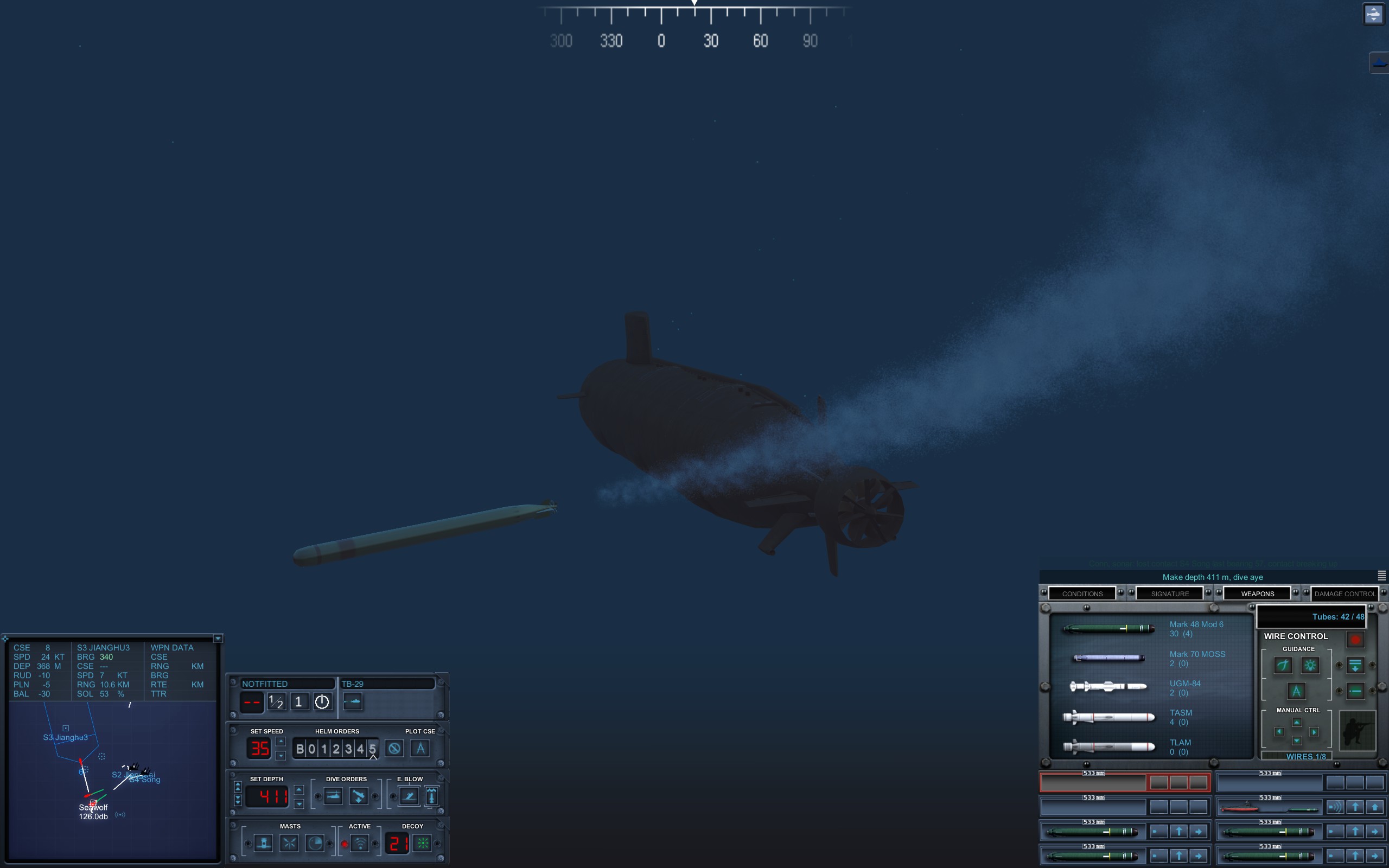 인게임 상 가장 최신 개량형인 Mk-48 Mod 6 어뢰를 발사하는 모습.