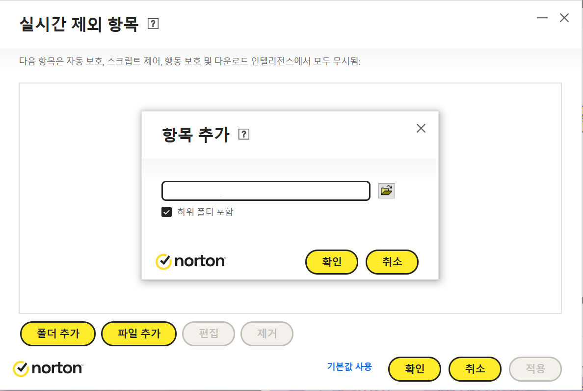 노턴 안티 바이러스 예외 처리하기 본문